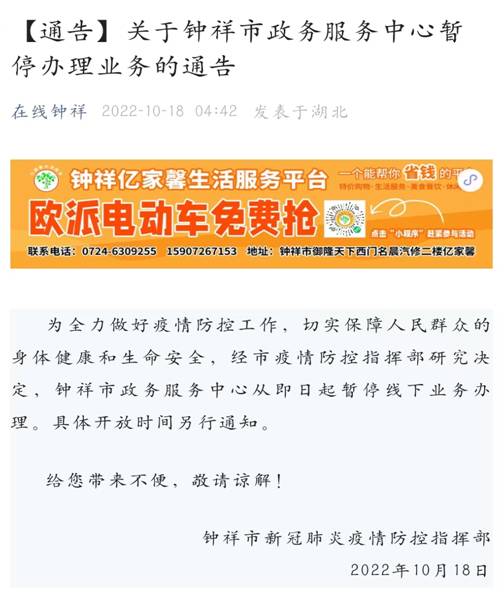 荊門市大地拍賣有限公司原定于2022年10月19日在鐘祥市公共資源交易中心三樓招標(biāo)二廳(新政務(wù)服務(wù)中心)召開(kāi)的鐘祥市胡集6家建筑石料礦山生態(tài)修復(fù)工程產(chǎn)生的多余土石料拍賣會(huì),現(xiàn)因疫情原因?qū)?huì)議地點(diǎn)改為荊門市大地拍賣有限公司會(huì)議室。 特此公告。 荊門市大地拍賣有限公司 2022年10月18日